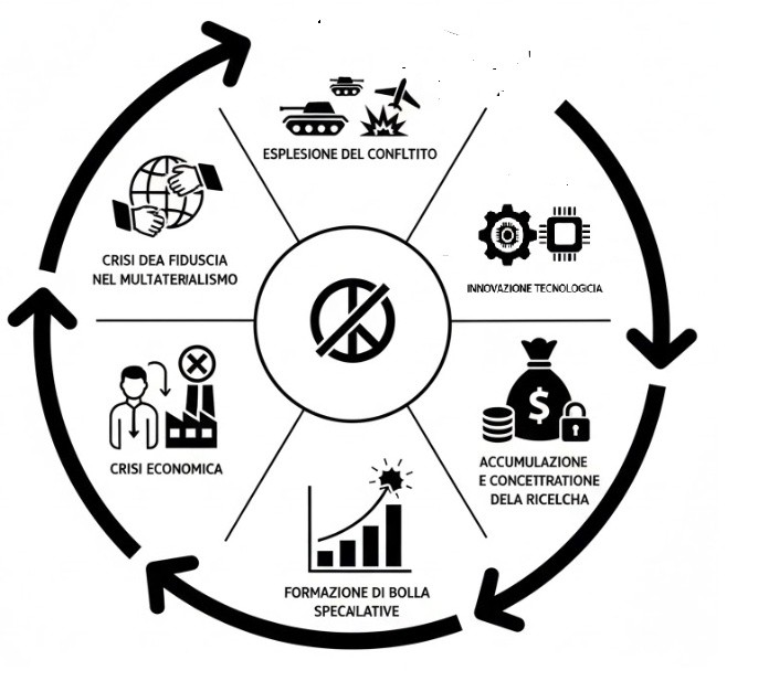 - Azione: Le nazioni, incapaci di risolvere i loro problemi interni (disoccupazione, fame) attraverso la cooperazione economica, vedono l’espansione militare (imperialismo, conquista di risorse) o la produzione bellica (come soluzione keynesiana alla disoccupazione) come l’unica via d’uscita dalla crisi.